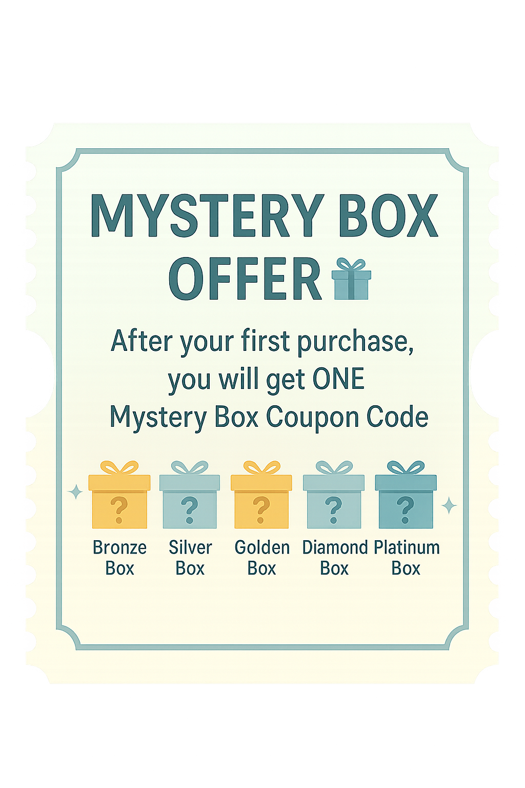 After your first order, unlock a Mystery Box Coupon for your second purchase.